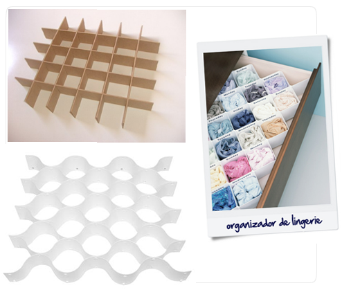 Essa é a minha preferida, pois é só dobrar e colocar nos compartimentos tudo bem separadinho, deixando assim tudo organizado!